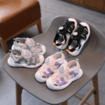 صندل بچگانه با دو چسب قابل تنظیم و زیره بسیار نرم و انعطاف پذیر راهنمای سایز و سانت داخلی سایز22سانت
