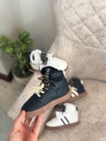 رویه چرم ضدآب آستر داخل خزدار بغل زیپ دار و سبک راهنمای سایز و سانت داخلی سایز26سانت داخلی16 سایز27سانت داخلی16/5